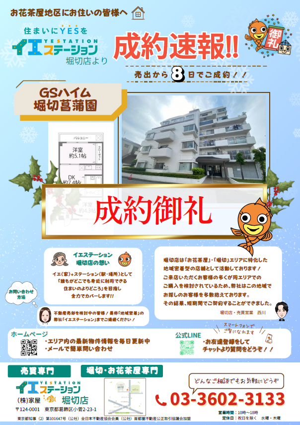 成約御礼チラシ【GSハイム堀切菖蒲園】