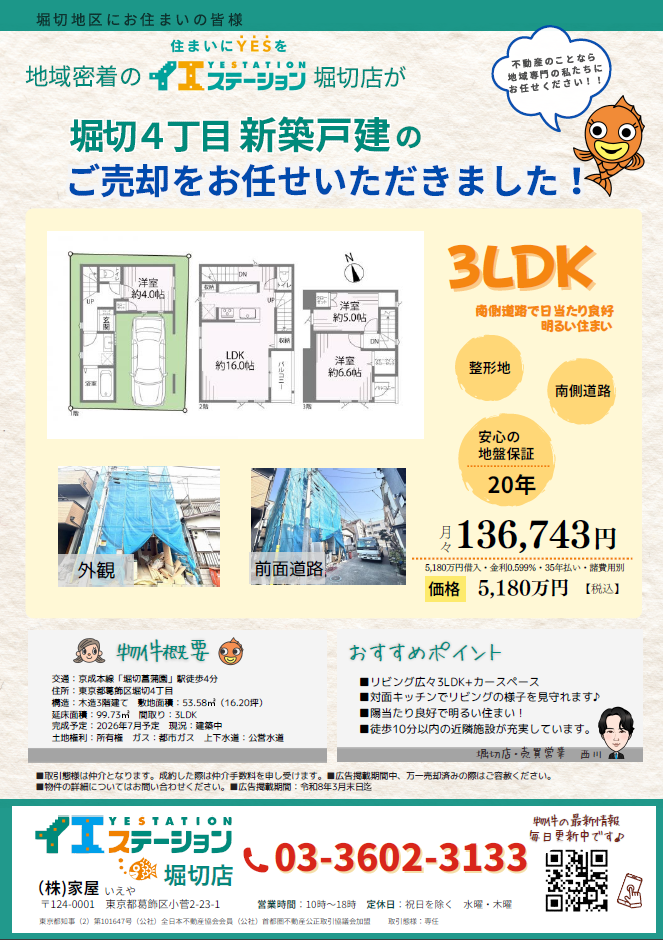 売却のお手伝いをする事になりました。【堀切4丁目 新築戸建】